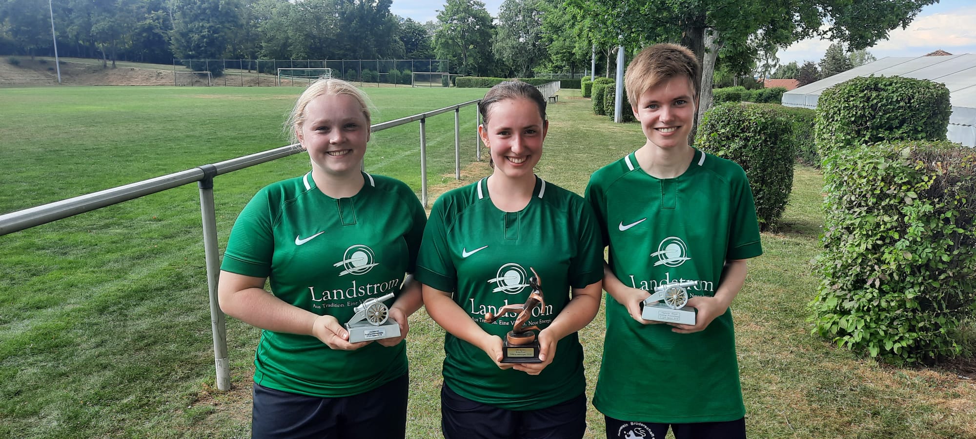 Anschließend hieß es die Fußballschuhe selbst anzuziehen. Nach dem ausgerichteten Turnier mit insgesamt 3 Damenmannschaft feierten die Damen nicht nur den Turniersieg sondern 3 unserer Spielerinnen wurden noch besonders geehrt. Lea und Natalie haben beide die Torjägerkanone geholt mit jeweils 11 Toren und Gina, die in der Saison ihr 100tes Spiel absolviert hat.