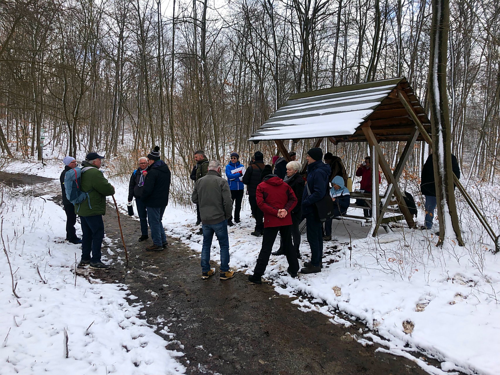 Am Samstag, den 11.03.2023 haben sich 23 Wanderer des TVB am Sportheim getroffen, um dann pünktlich um 11.00 Uhr zur Wanderung in den Huy zu fahren. Es ging mit 3 Bussen und einem PKW zum Parkplatz der Jagdhütte Röderhof.
