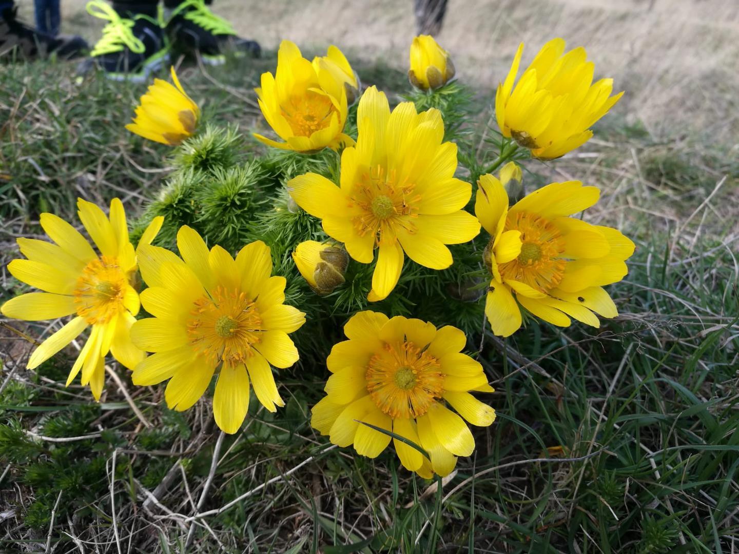 Die gelb blühenden Adonisröschen gibt es nur noch selten und auf dem Heeseberg ist eine der letzten Stätten wo sie in Deutschland noch vorkommen. Nachdem wir unter schwerstem körperlichen Einsatz einige Fotos von dem seltenen Gewächs gemacht hatten, ging es weiter an der Gaststätte vorbei und wieder zurück Bergab nach Jerxheim zu unseren Fahrzeugen. Zum Abschluß des herrlichen Wandertages kehrten wir noch im Golfclub ein und haben dort eine stärkende Mahlzeit zu uns genommen.